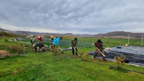 Wasserleitung der Tröpfchenbewässerung wurde beim Gemüseacker eingegraben.