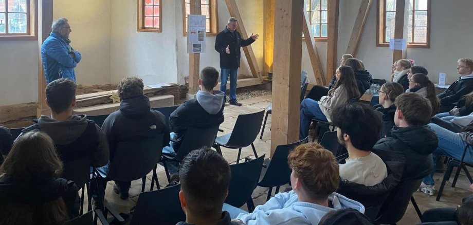 Oberstufenschüler der Adam-von-Trott-Schule besuchen Synagoge in Harmuthsachsen. Einen besonderen Einblick in die regionale Geschichte und das jüdische Leben früher und heute erhielten die Schülerinnen und Schüler der Oberstufe der Adam-von-Trott-Schule Sontra bei einem Besuch der Synagoge in Harmuthsachsen.