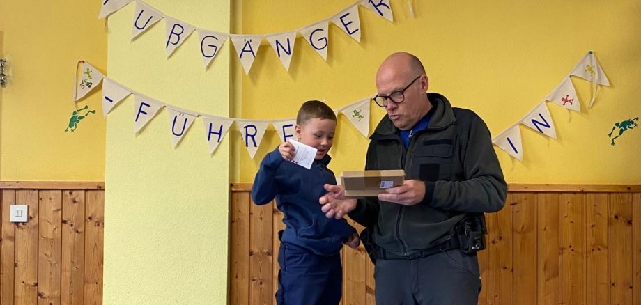 Bildunterschrift1: Jonas Kestner mit Herrn Schilling von der Polizei
