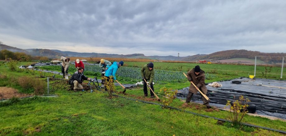 Am Wochenende kamen rund 15 Helferinnen zusammen, um auf dem Gemüseacker Waldkappel die Wasserleitung der Tröpfchenbewässerung einzugraben. Viele Stunden haben sie mit Spaten und Hacke unermüdlich dazu beigetragen, dass der Acker die kommende Saison noch besser bewirtschaftet werden kann.