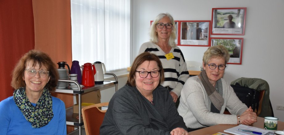 Foto von Ellen Schubert: Die leitende Koordinatorin und Palliativ-Care-Pflegekraft bei der Hospizgruppe Eschwege e.V. Annette Kukule (zweite von rechts) hielt bei den Landfrauen Hosbachtal (von links: Martina Lenz, Doris Huisgen, (Annette Kukule) und Astrid Kollmann) einen informativen und bewegenden Vortrag über die Arbeit im Hospiz.