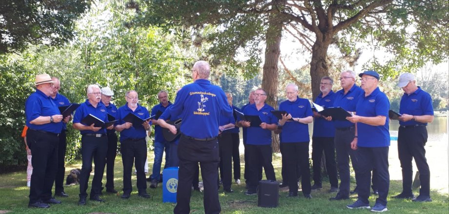 Das Singen im Parkchorfest war eine tolle Veranstaltung. Jeder der anwesenden vierzehn Chöre sang jeweils zweimal auf zwei verschiedenen der insgesamt vier Bühnen. Dieses Konzept ermöglichte es dem Publikum und auch den Sängerinnen und Sängern, sich frei im schönen Park am Steinertsee zu bewegen und verschiedene Chöre zu hören. Die Stammtischsänger Waldkappel zeigten mit ihrem Repertoire, welches von den Puhdys und Hazy Osterwald über Helene Fischer bis hin zum Wellerman und Rock ’n Roll im vierstimmigen Chorsatz reichte, dass ein Männerchor auch zum Pop-Chor werden kann. Die Mischung kam beim Publikum so gut an, dass einzelne Besucherinnen und Besucher den Sängern auch zur zweiten Bühne folgten.